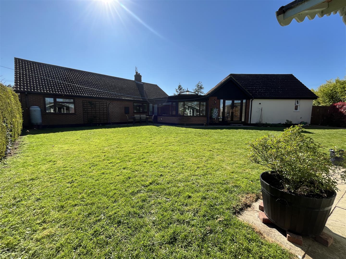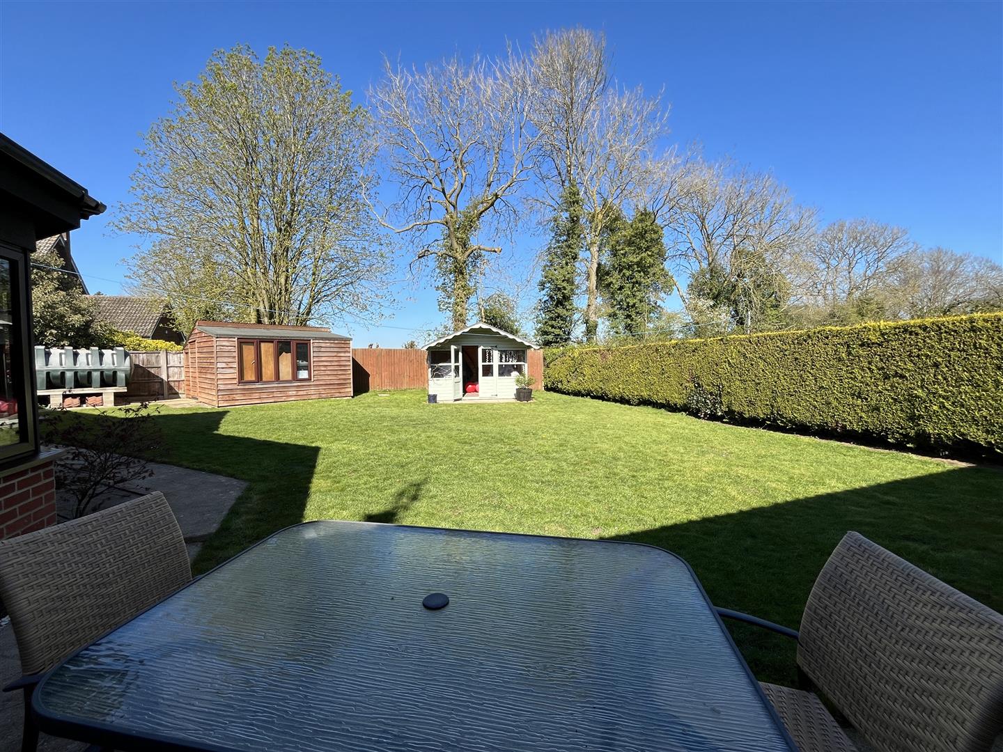 Behind a charming five-bar gate and mature shrubbery, this delightful bungalow offers a rare combination of privacy and security. The driveway, finished in brick weave, provides generous space for multiple vehicles, a caravan, or a boat. A welcoming pathway leads to the front door, bordered by neatly maintained lawns. To the rear, the property reveals a peaceful, private garden fully enclosed and non-overlooked perfect for relaxing or entertaining. The garden features a timber summer house and shed, a hard standing pathway, and a patio area ideal for outdoor dining. A convenient side gate ensures easy access, making this outdoor space both secure and versatile.