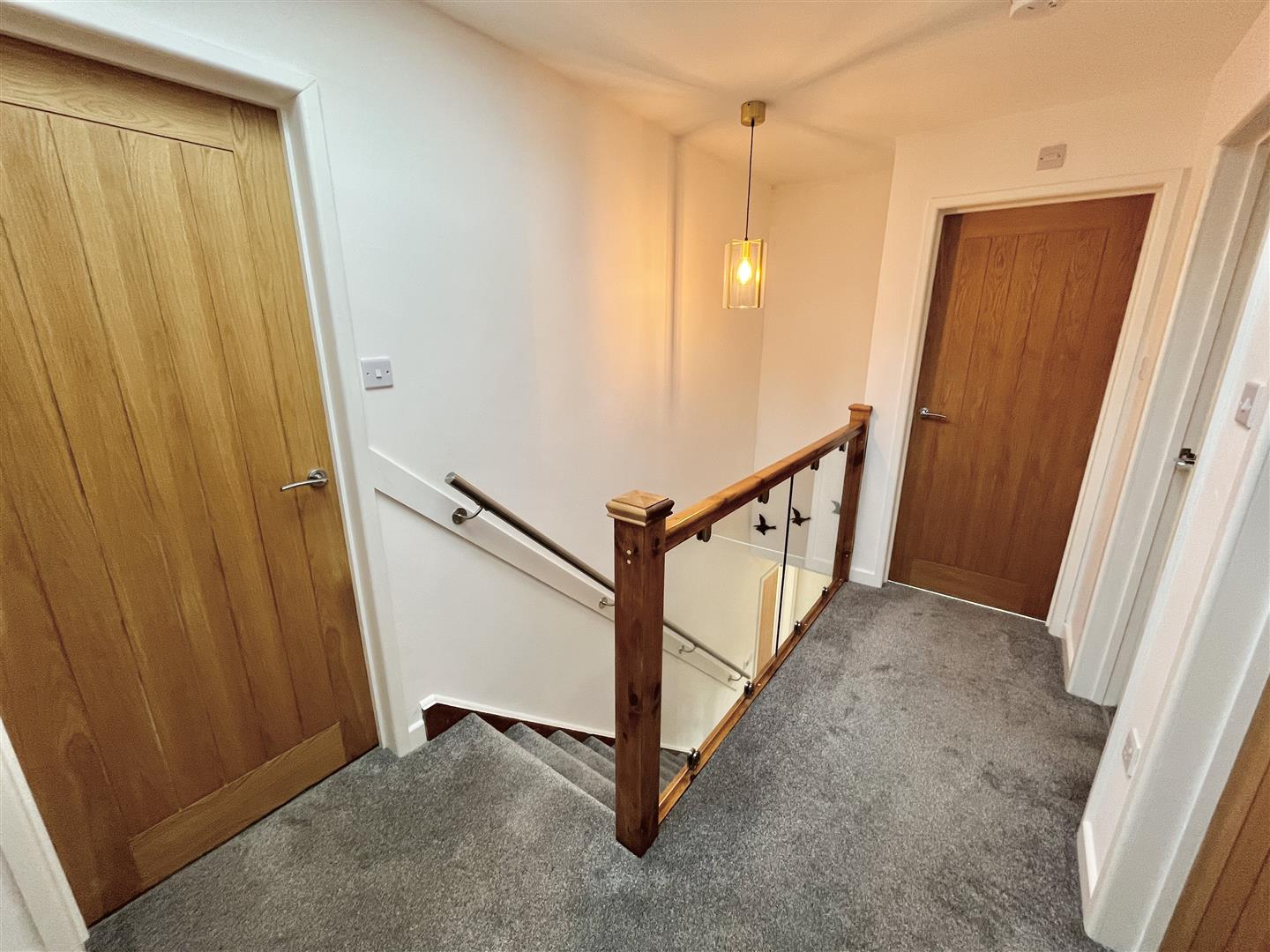 Step through the welcoming entrance hall and you immediately sense the attention to detail that defines this home. At its heart lies a stunning kitchen/dining space, fitted with sleek modern units and a breakfast bar, where natural light floods through patio doors to the private rear garden. The dining area flows seamlessly from the kitchen, while a thoughtfully appointed utility room and ground-floor WC ensure every modern convenience is at hand. The lounge, with its feature wood burner and garden access, offers a perfect balance of warmth and sophistication. Upstairs, the principal bedroom commands tranquil field views and a en-suite shower room, while the second bedroom also captures the serenity of the surrounding landscape. A third double bedroom and a contemporary family bathroom complete this refined first floor. Throughout the home, high-end touches from oak doors to a sleek glass balustrade underscore a commitment to quality and design. This is a property that doesn’t just accommodate modern living; it elevates it.