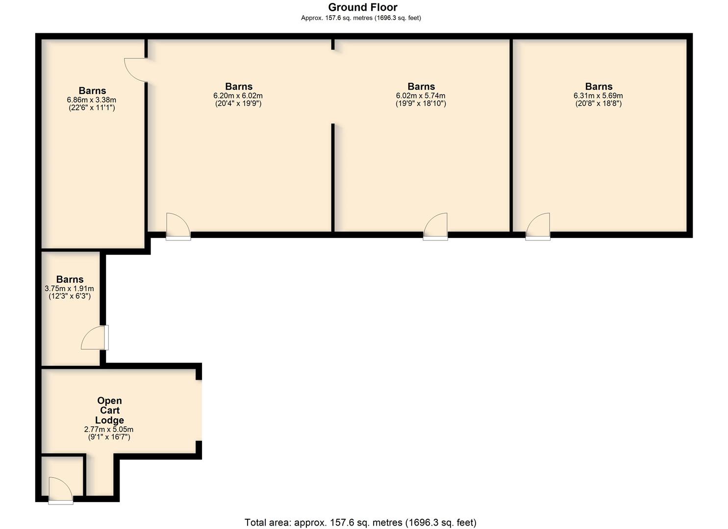 The farmhouse is approached along a peaceful country lane, where the setting immediately conveys a sense of privacy and rural charm. As the driveway is entered, the property opens out to reveal an appealing collection of traditional barns, useful outbuildings, and a cart lodge, all arranged to complement the main residence. Immediately adjoining the house is a formal garden, thoughtfully designed with established shrub planting and a ditch boundary, providing both structure and seclusion. Beyond, the land extends to a further two fields, offering excellent versatility for equestrian use or a smallholding lifestyle. In all, the property extends to approximately 4.71 acres and enjoys a delightful, park like rural setting. Rarely does a property of this nature and potential come to the market.
