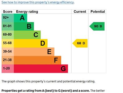 The property is connected to mains water, electricity, gas, and drainage. Heating and hot water are provided via a gas-fired boiler serving radiators throughout.