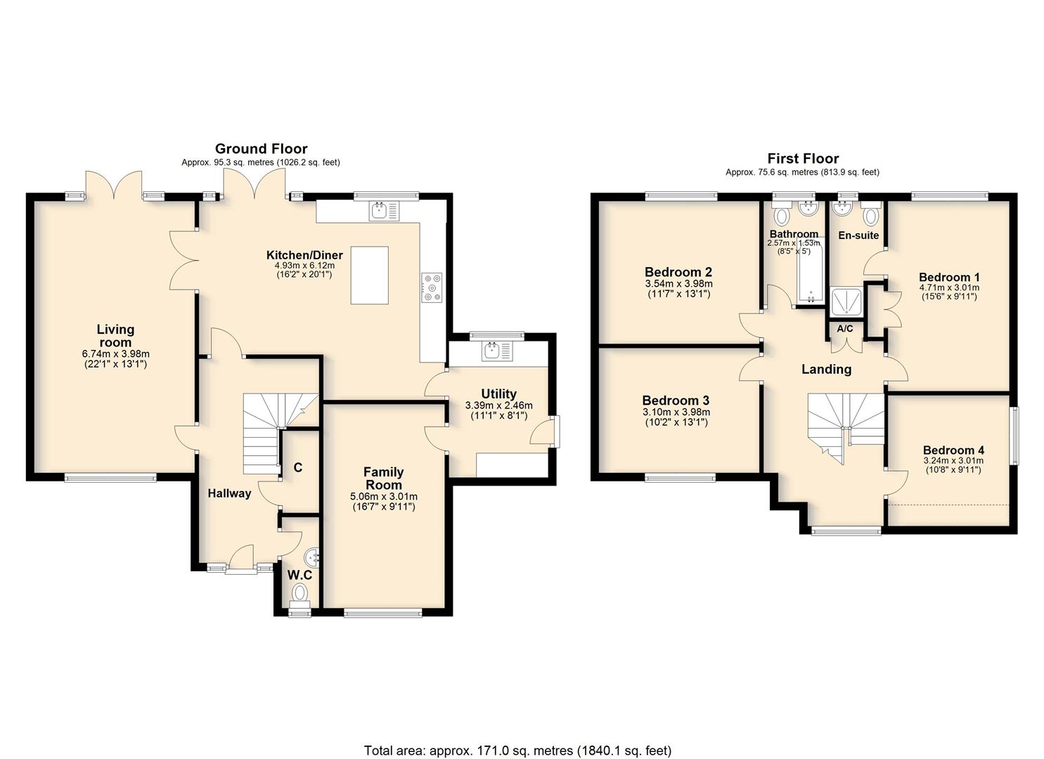 The Meadow House is an individually built home offering well-balanced and thoughtfully arranged accommodation throughout. The proportions are particularly generous, most notably within the spacious living room, while the overall layout creates a natural and comfortable flow, ideal for everyday living. The kitchen/dining room has been opened up in recent years by the current owners, creating a sociable and inviting space well suited to modern living and entertaining. This area is fitted with a range of contemporary units, complemented by a quality integrated Miele dishwasher, combining both practicality and style. A separate utility room provides valuable additional space, ideal for housing white goods and maintaining a clean, uncluttered kitchen environment. In addition, the family room offers excellent versatility and can be used as a more informal second sitting room, a children’s playroom, or even a ground floor occasional bedroom, if required. Upstairs, there is further potential to enhance the layout, with scope to combine the existing bathroom and en-suite to form a Jack and Jill arrangement serving the two rear bedrooms; an appealing option for families or guests.