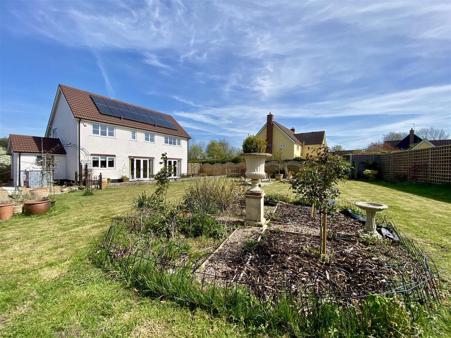 An individually built and well-proportioned village home in the sought-after location of Thorndon, offering spacious and versatile accommodation including a generous living room, open-plan kitchen/dining area, utility room, and flexible family space. Set back from the road with ample parking, detached garage/workshop, landscaped gardens, and a fully insulated garden studio. Well placed for access to Diss, Stowmarket, and mainline rail links to London Liverpool Street.Council Tax: E Location