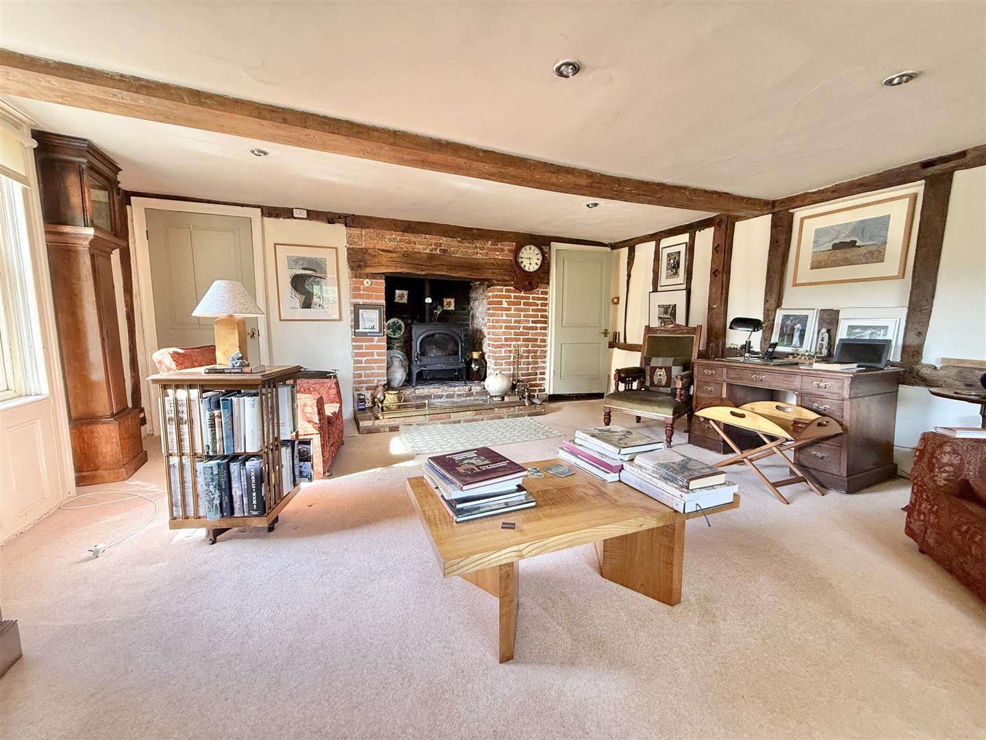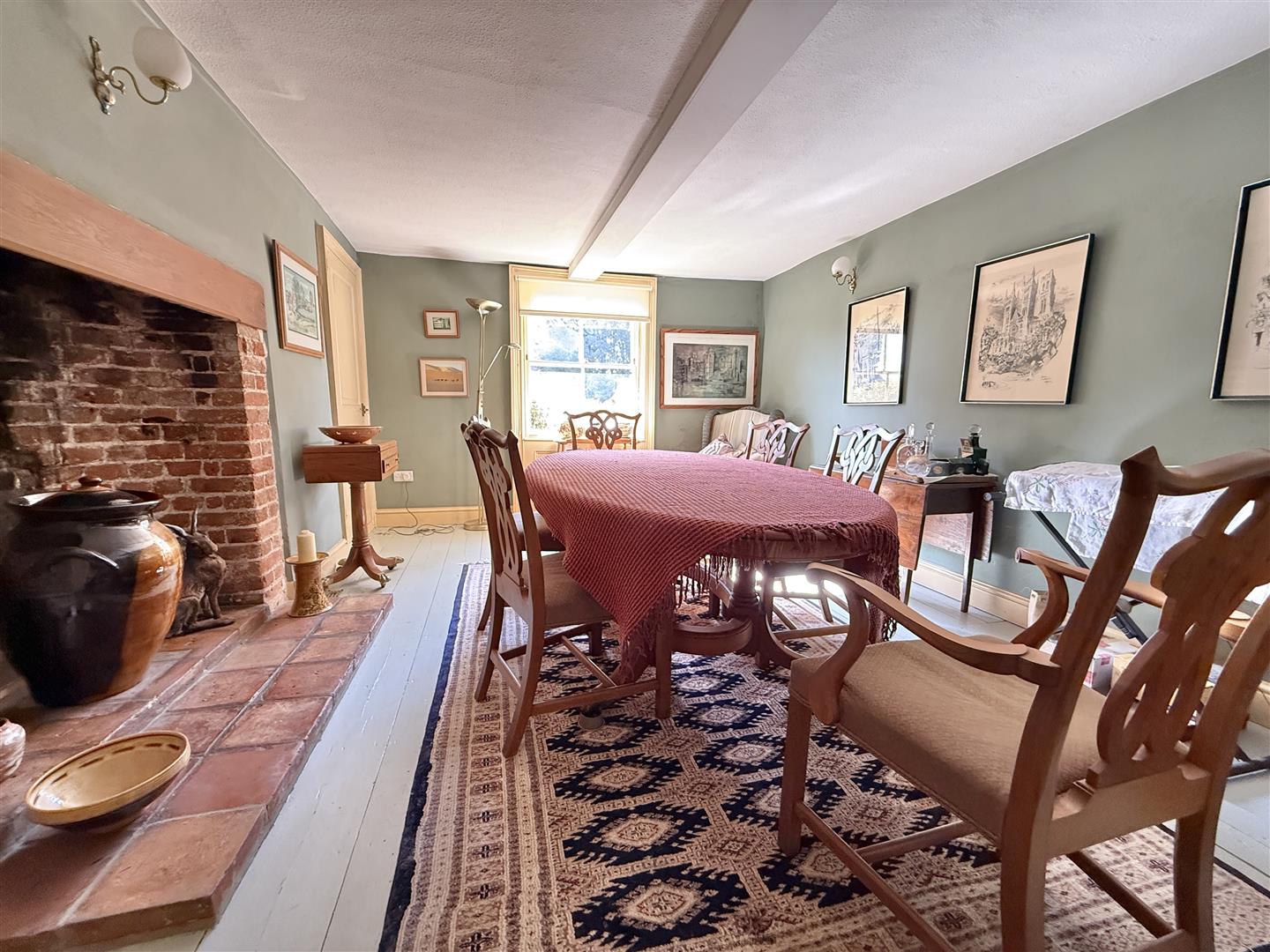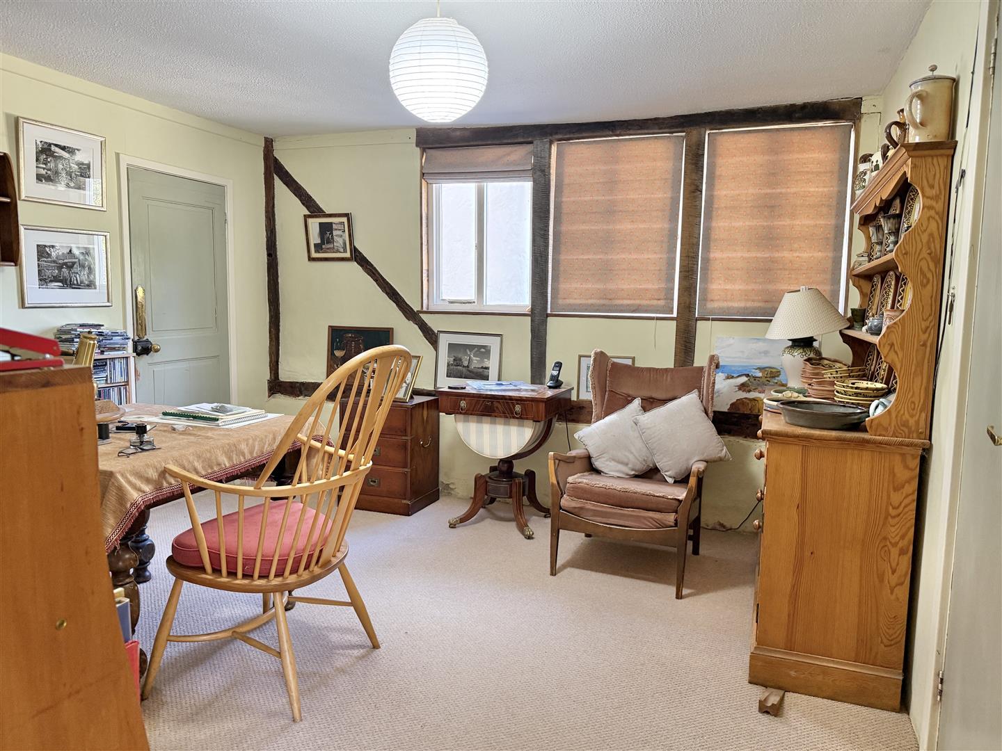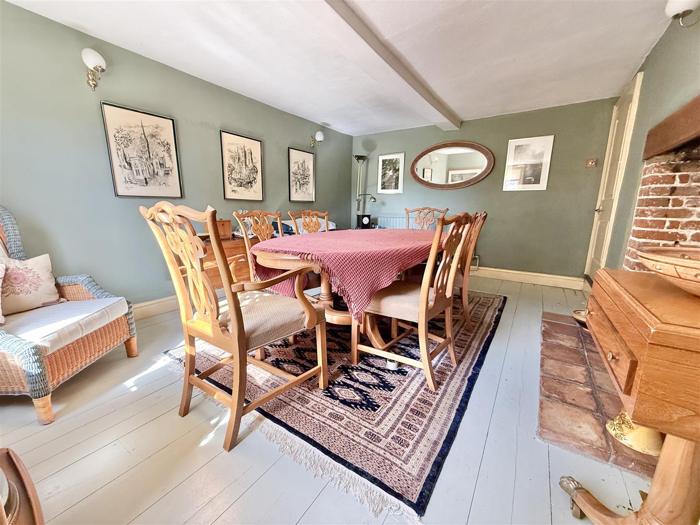 White House Farm is a handsome Grade II listed residence, boasting excellent kerb appeal with its prominent sash windows and draped Wisteria covering much of the front façade. The front section of the house, thought to be of timber frame construction, dates back to around 1640, with a further extension from the kitchen/diner and back bedroom added in later years. This cherished home offers a practical layout, as well as plenty of space, which totals over 3,500 sq. foot of living accommodation. There are four reception rooms on the ground floor; the large living room at the front of the house is sizeable, with exposed wall and ceiling timbers, sash windows/shutters and a prominent chimney breast displaying a herringbone hearth and wood burning stove. The impressive dining room is equally a lovely formal space, ideal for hosting family or friends, whilst the Day Room is a relaxing place to unwind, read or study.