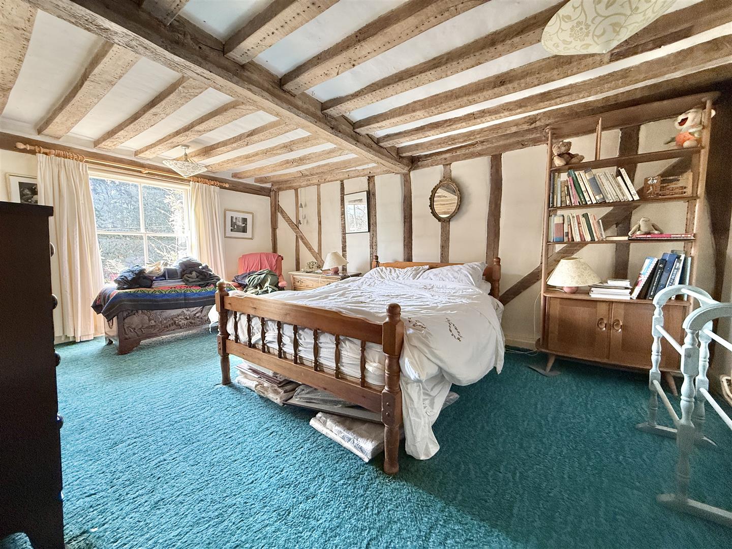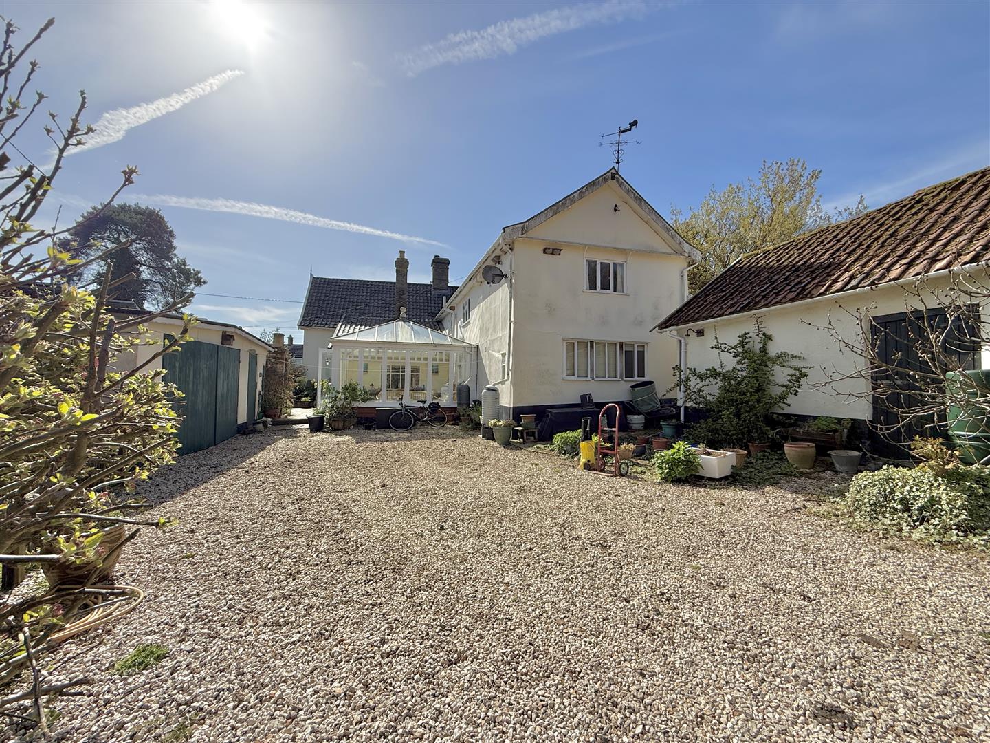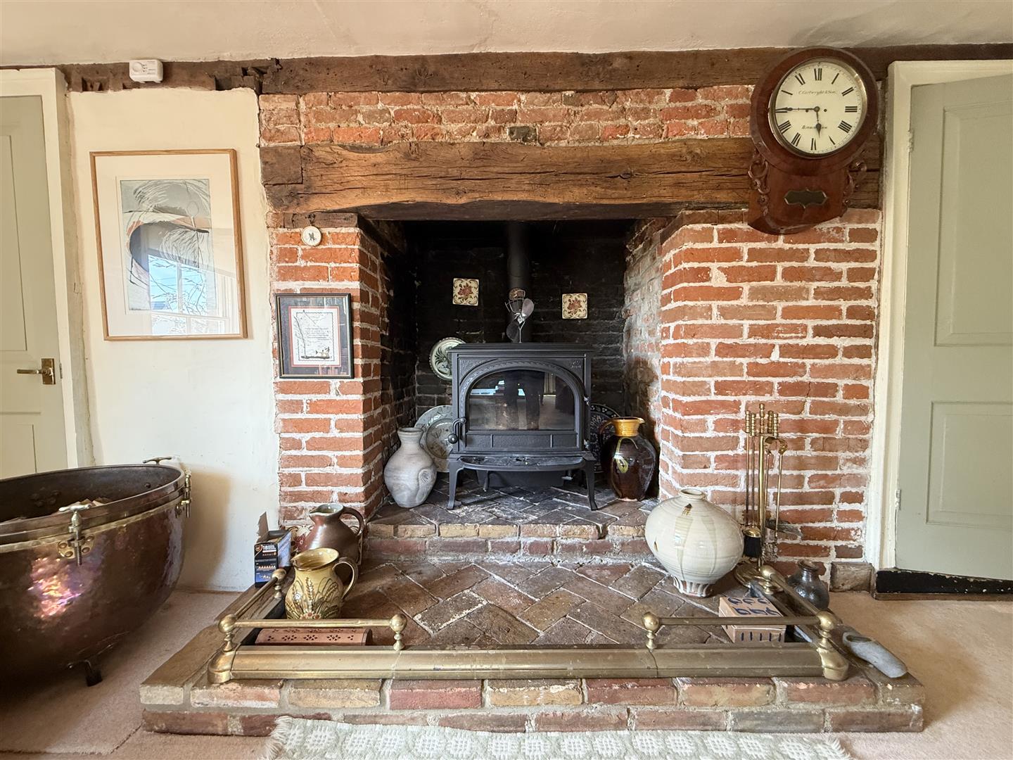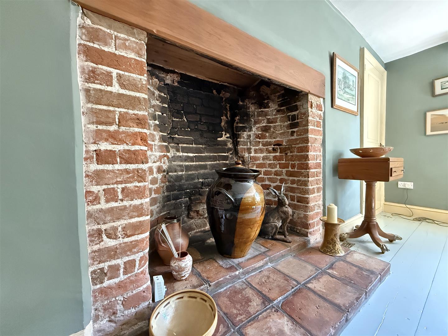 White House Farm is a handsome Grade II listed residence, boasting excellent kerb appeal with its prominent sash windows and draped Wisteria covering much of the front façade. The front section of the house, thought to be of timber frame construction, dates back to around 1640, with a further extension from the kitchen/diner and back bedroom added in later years. This cherished home offers a practical layout, as well as plenty of space, which totals over 3,500 sq. foot of living accommodation. There are four reception rooms on the ground floor; the large living room at the front of the house is sizeable, with exposed wall and ceiling timbers, sash windows/shutters and a prominent chimney breast displaying a herringbone hearth and wood burning stove. The impressive dining room is equally a lovely formal space, ideal for hosting family or friends, whilst the Day Room is a relaxing place to unwind, read or study.