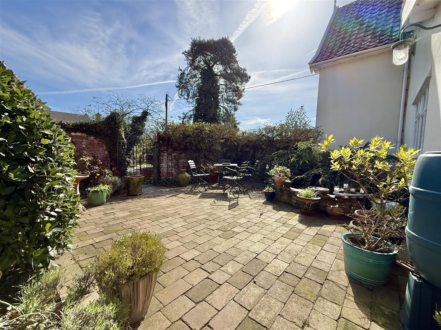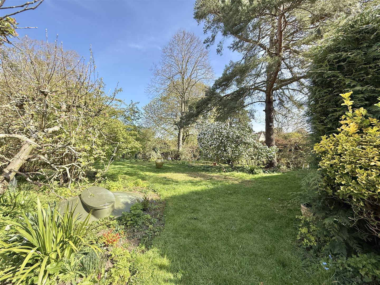 There are two generous pockets of garden at the rear; the first of which is adjacent to the garage with a lawn and mature trees and shrubs to borders. The second is found via a copper beach pergola walkway which opens to a large section of mature grass and an orchard. Various shrubs and mature trees edge the boundary.