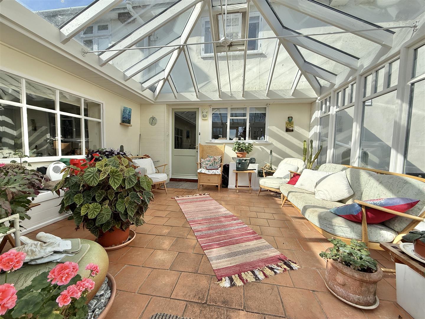 From a side porch, a welcoming hallway provides a place to greet and uncloak; leading into the inner hallway and kitchen/diner. The kitchen has good side board/food preparation space, along with an AGA and a door to a boiler cupboard and beautifully spacious conservatory (built around 20 years ago) which opens into the courtyard. Further back from the kitchen is a potential office, along with a shower room/WC and a large walk-in store room, which could easily be used as a pantry.