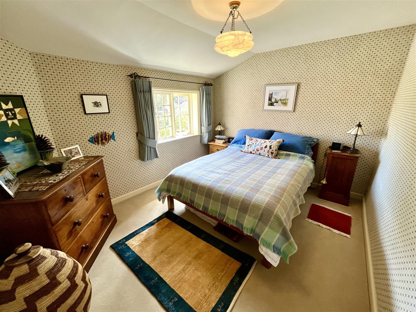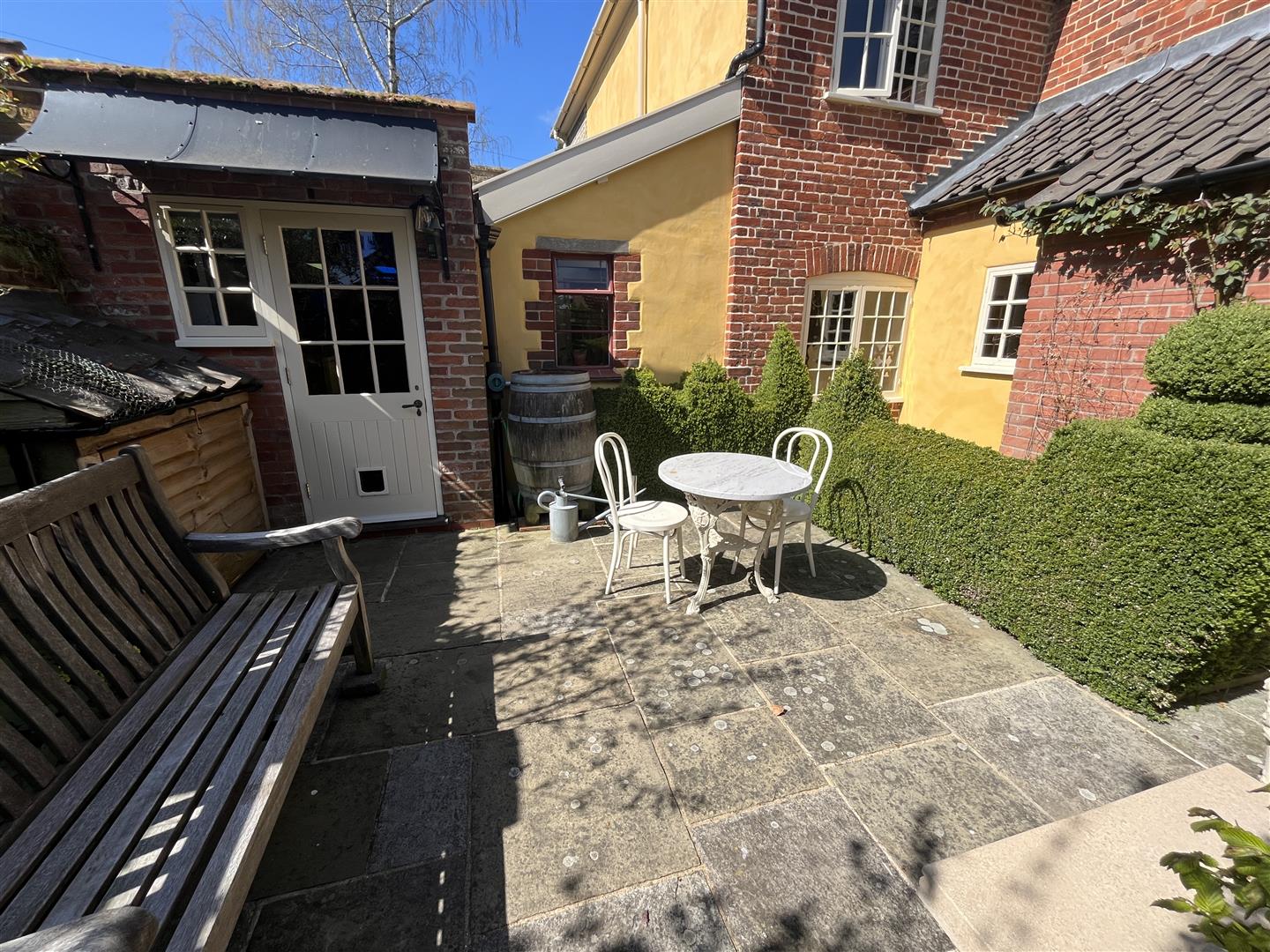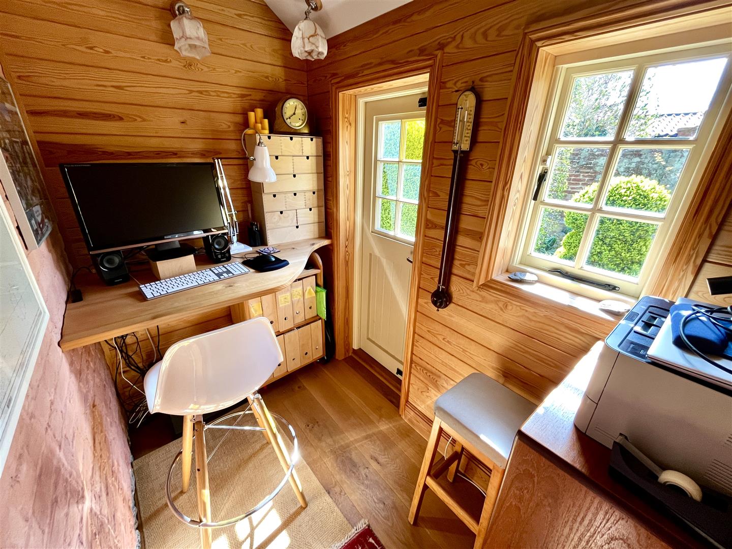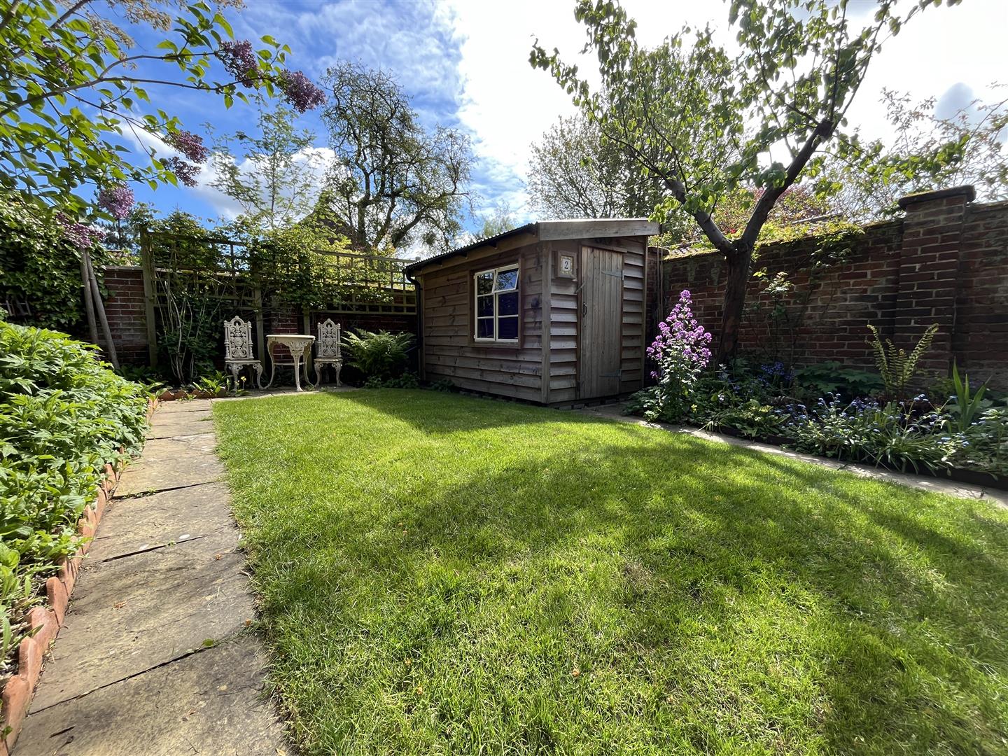 To the front of the property a sweeping driveway leads to the garage and a charming cottage-style garden, complete with a wildflower patch that adds a burst of natural colour. To the rear, the garden features a delightful patio courtyard framed by topiary hedging, offering a perfect space for outdoor relaxation. Beyond this lies a walled garden, home to mature trees, established hedging, and a generous lawn area. Additional features include a timber summer house and a wood store, enhancing both the functionality and character of the garden.