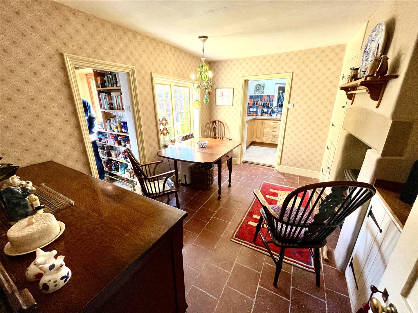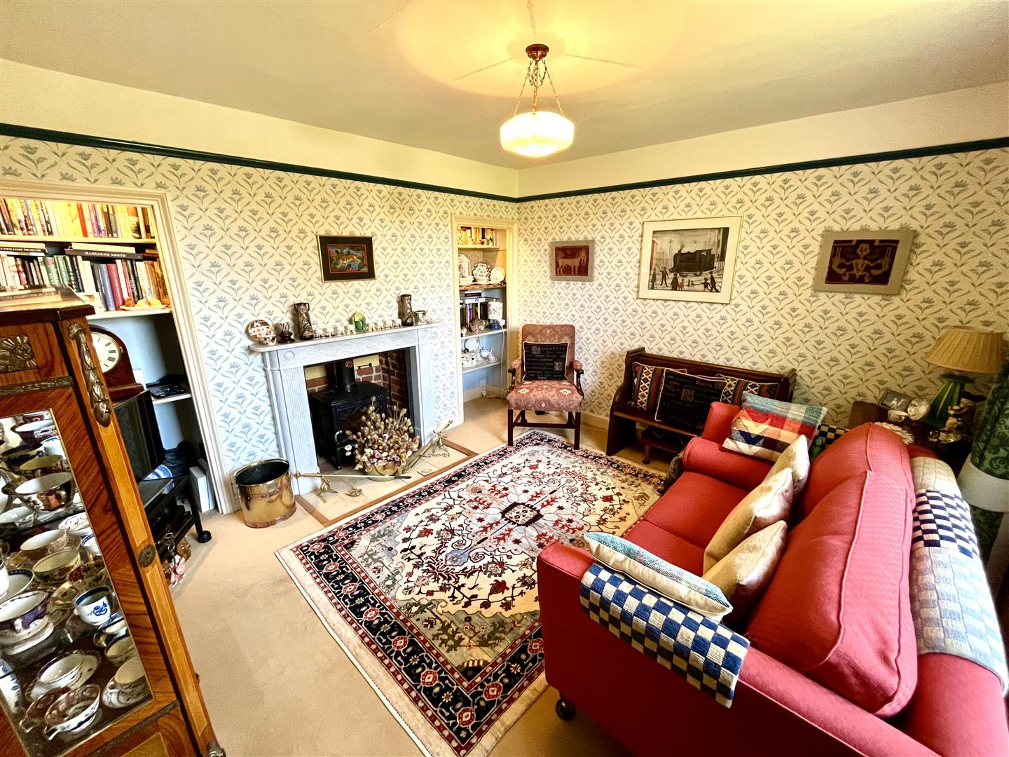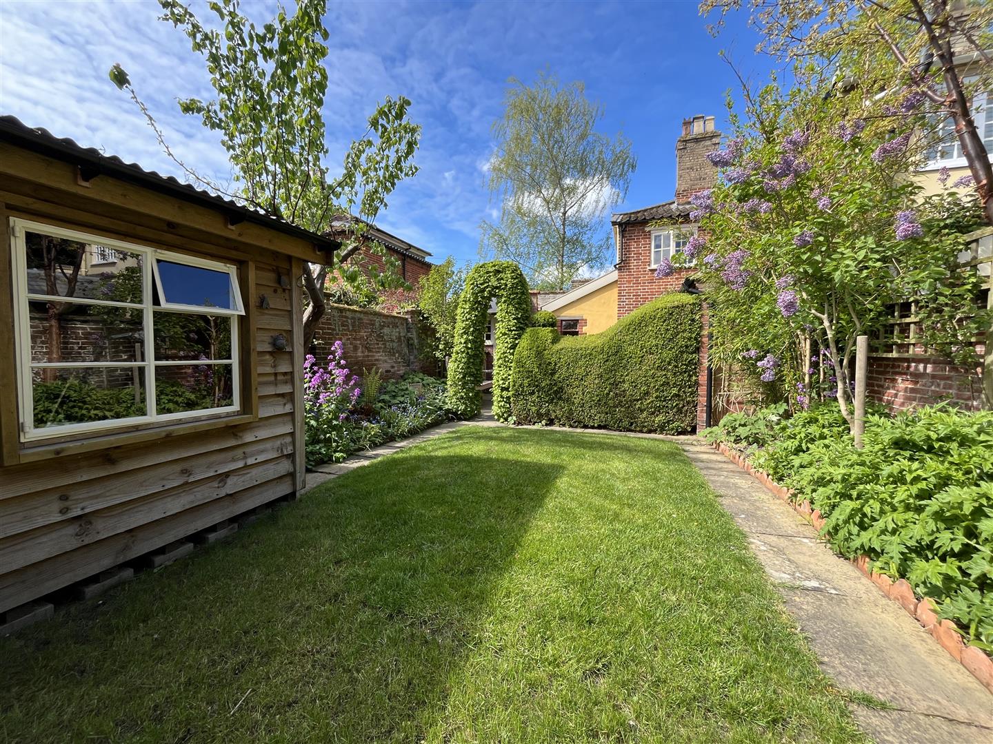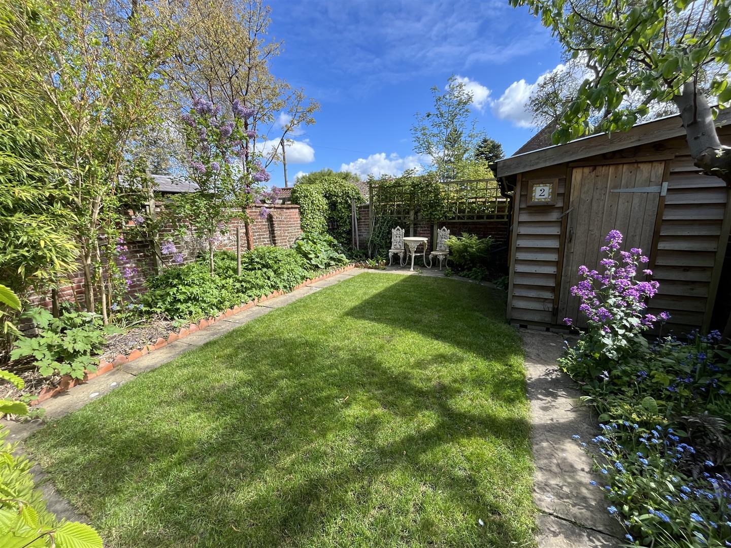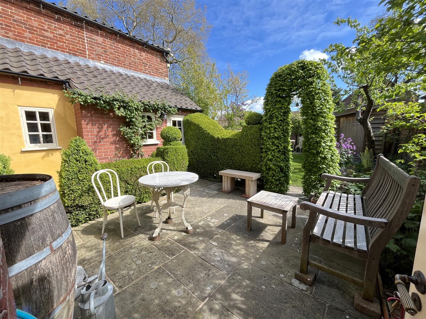 To the front of the property a sweeping driveway leads to the garage and a charming cottage-style garden, complete with a wildflower patch that adds a burst of natural colour. To the rear, the garden features a delightful patio courtyard framed by topiary hedging, offering a perfect space for outdoor relaxation. Beyond this lies a walled garden, home to mature trees, established hedging, and a generous lawn area. Additional features include a timber summer house and a wood store, enhancing both the functionality and character of the garden.