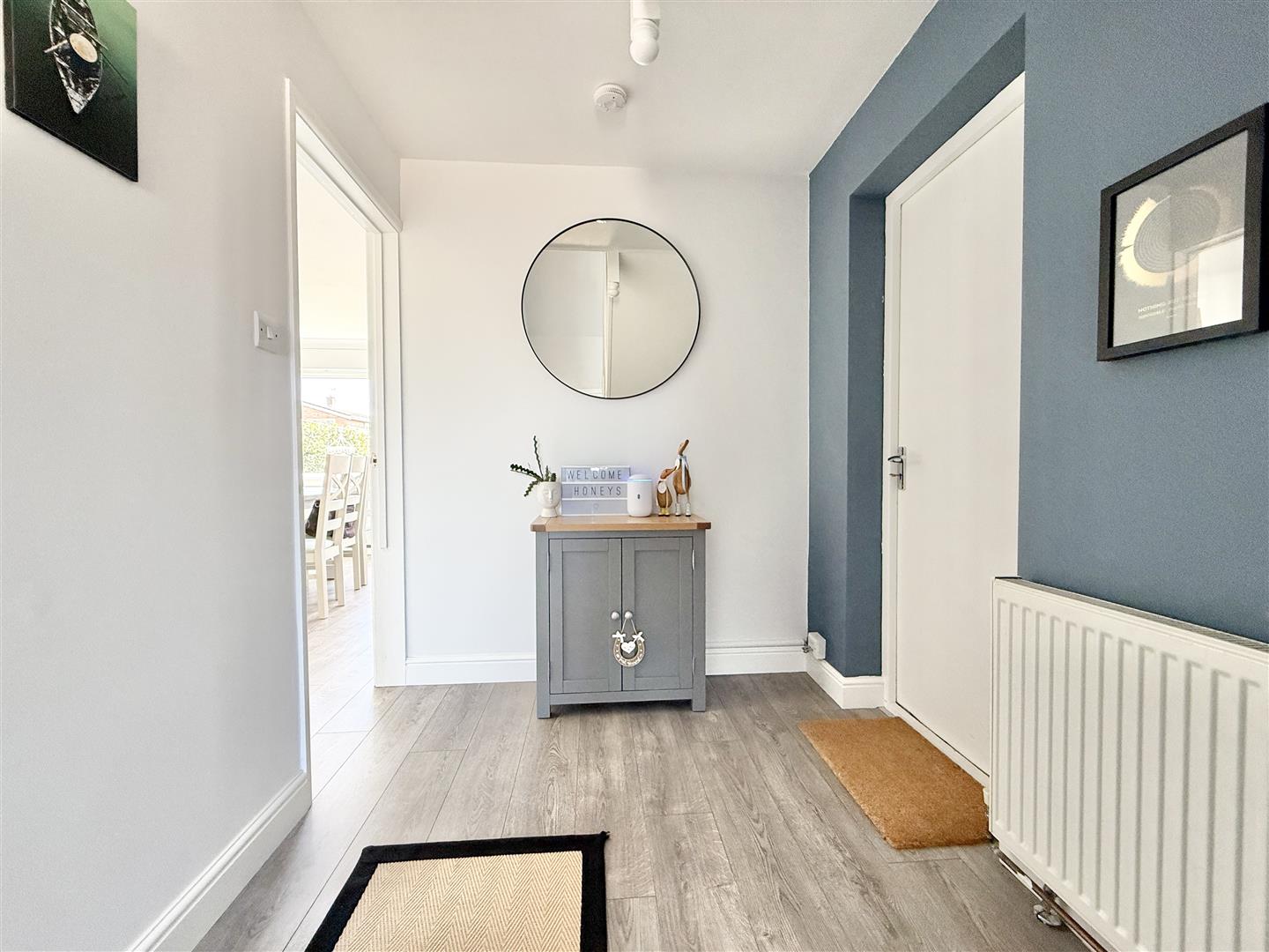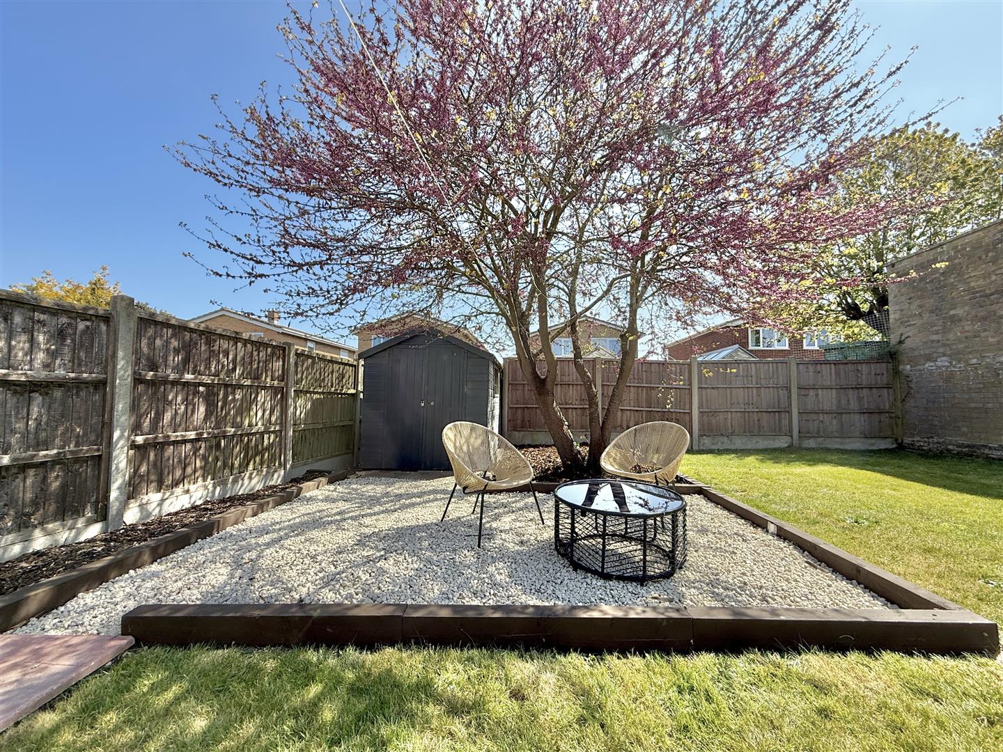 The gravel driveway to front allows ample parking space for 3-4 vehicles. Access to the side of the property with a secure gate opens to the mature rear garden. The rear garden is laid to lawn with a mature tree and bistro area, which creates a focal point in the garden