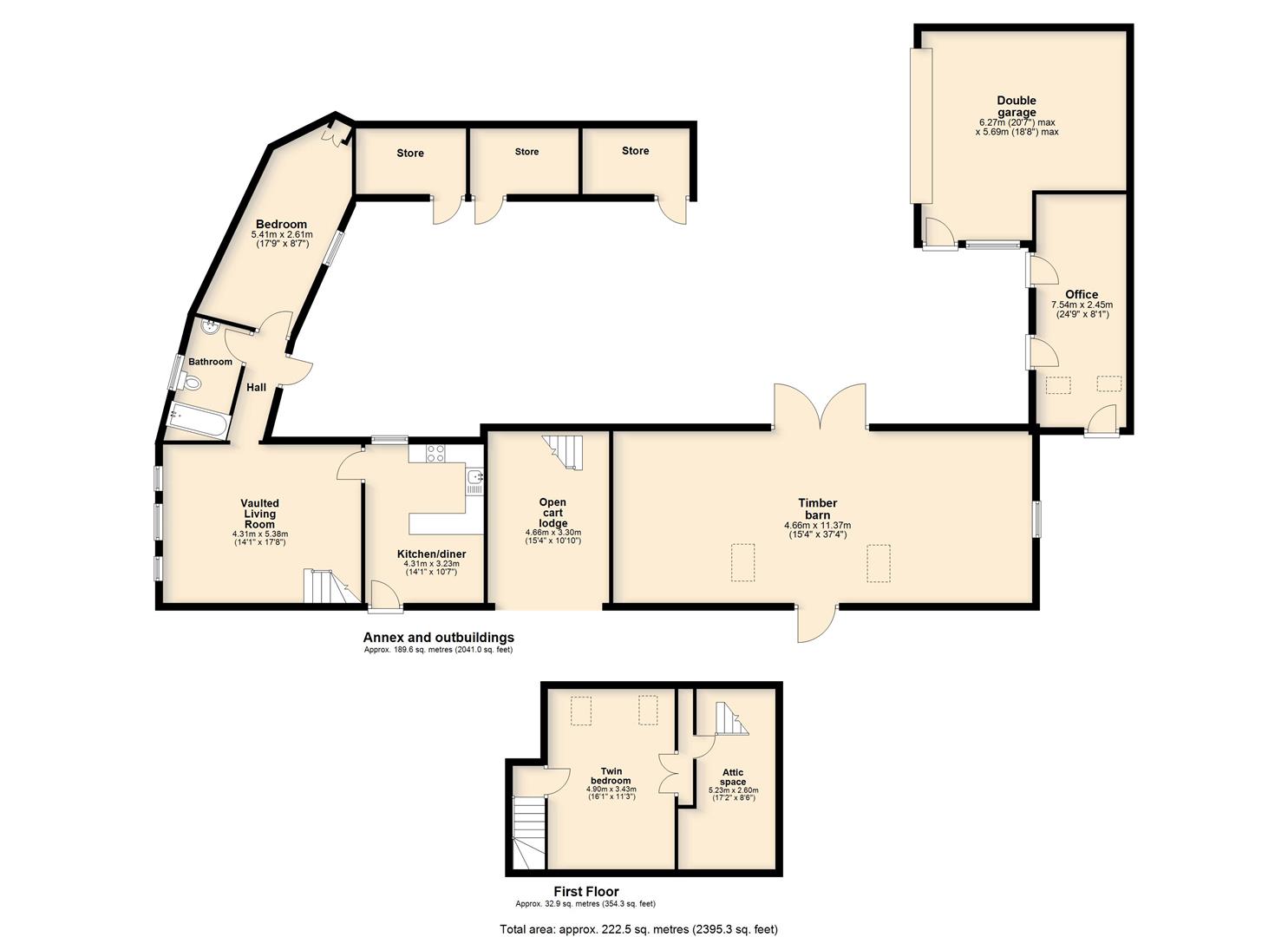 The annexe, office and other outbuildings.