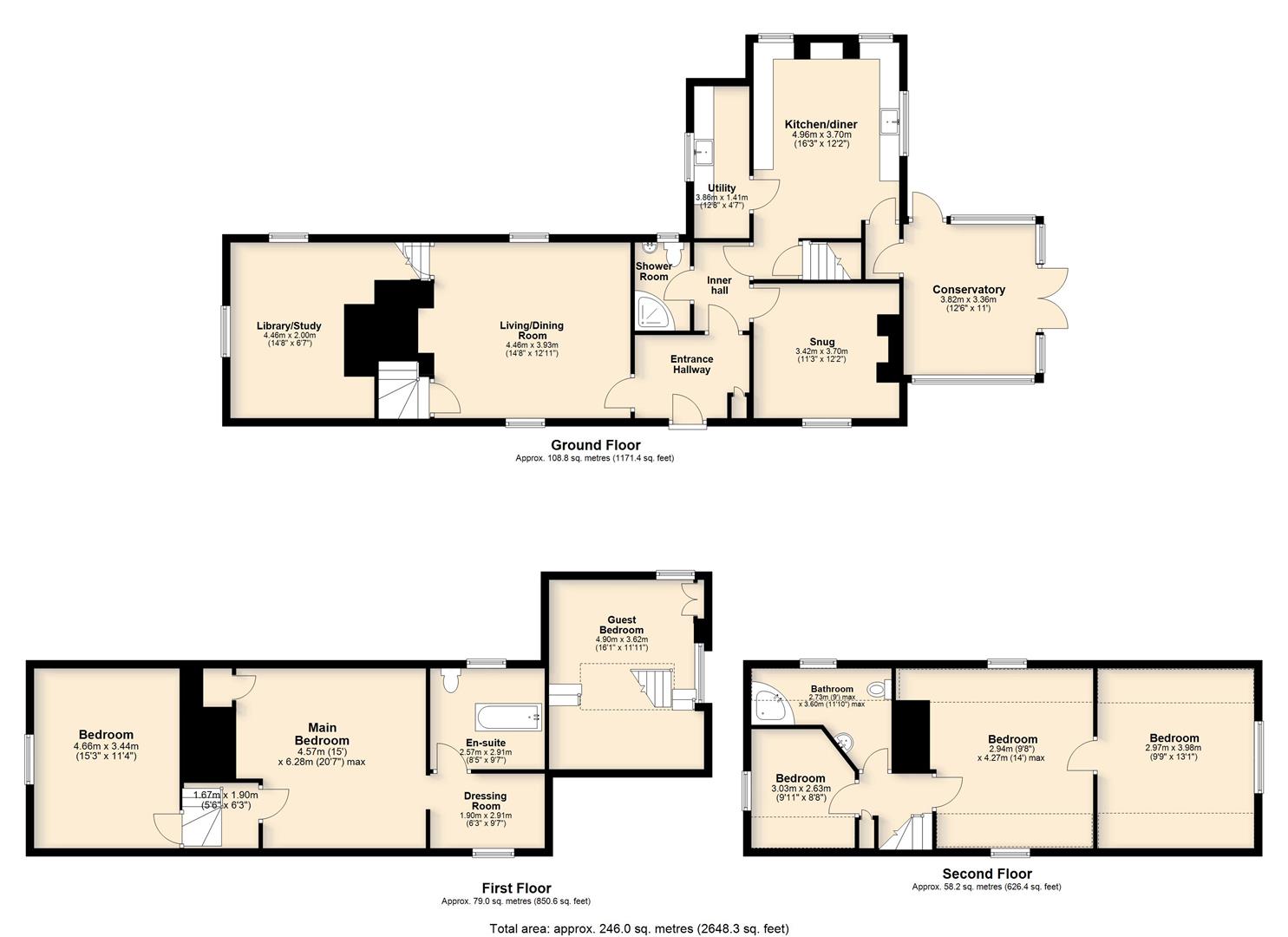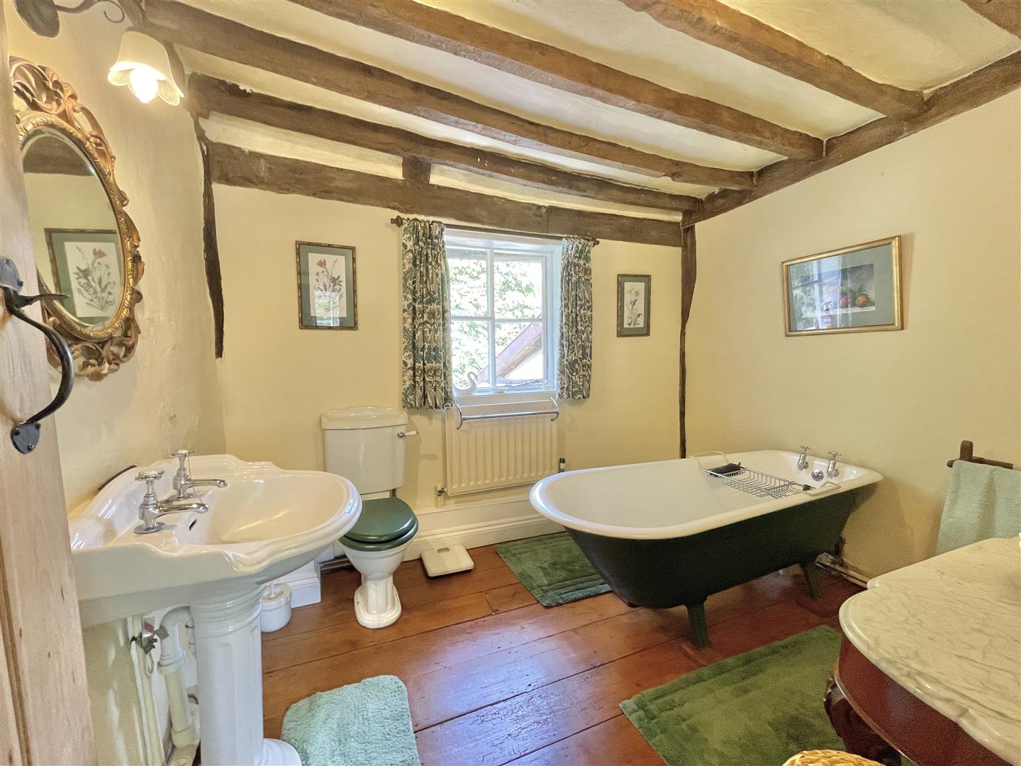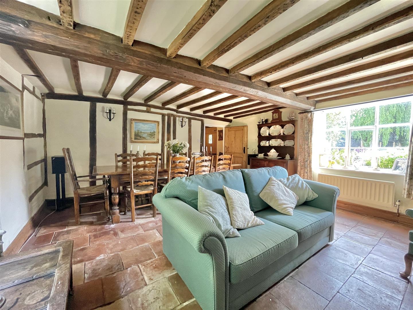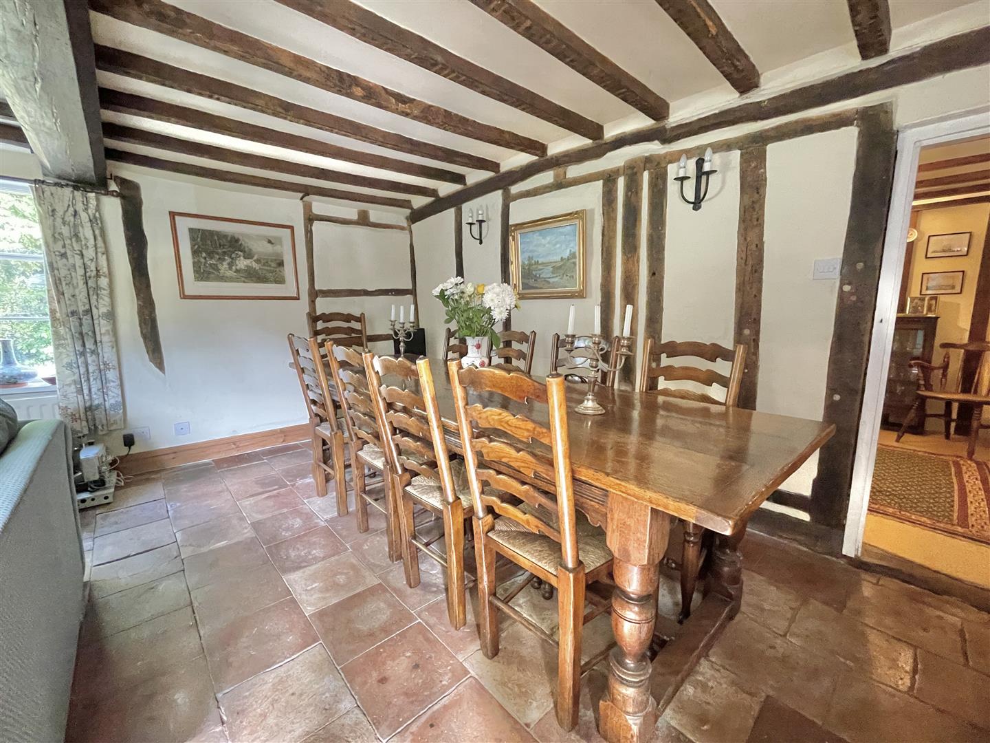Attractive Grade II listed 6 bedroom family residence with parts of the building dating back to 16th century, with later additions/extensions in more recent times. The house carefully underwent extensive refurbishment a couple of decades ago under the stewardship of the current owners, with the sellers placing huge emphasis on retaining the charm and abundance of original character the property possesses. There are great social spaces to enjoy, such as the 'country style' fitted kitchen/diner, juxtaposing a cosy snug and formal reception room with prominent features, the living/dining room with exposed timbers and imposing inglenook fireplace which neighbours a ‘sub level’ Library/study, with inset timbers and remnant Mullion windows; both rooms are shining examples of where the heritage of this wonderful property is distinctly on show. As can be seen from the floor plan, the bedrooms are spread across two upper floors, from ‘halfway’ landings, via an intriguing curving stairwell. The main bedroom suite is generous in size, with dressing room leading to an en-suite bathroom, boasting a roll top bath. A spacious ‘split level’ guest bedroom suite is discretely found from a separate staircase accessed from the kitchen/diner.