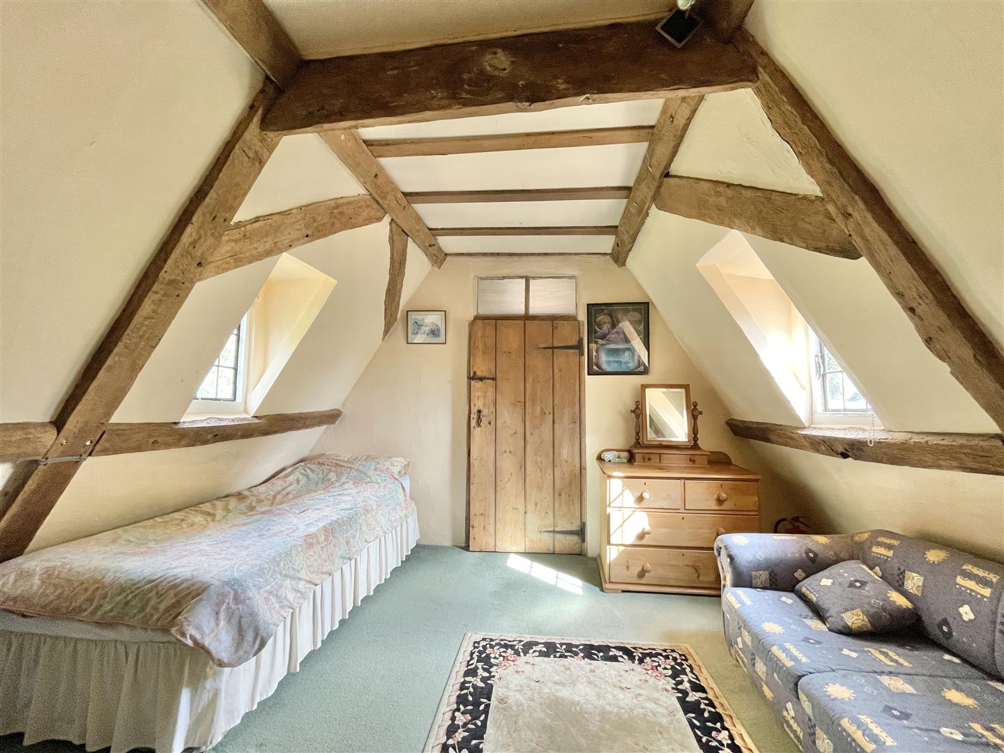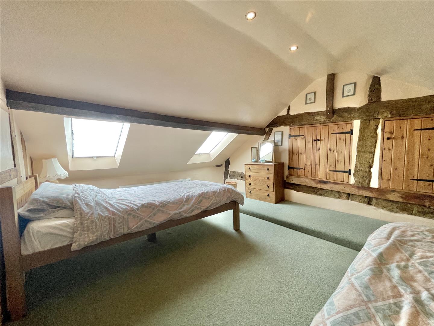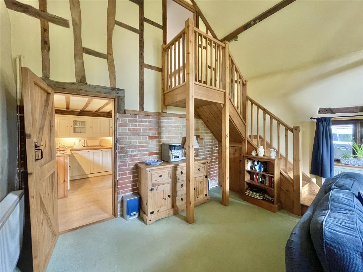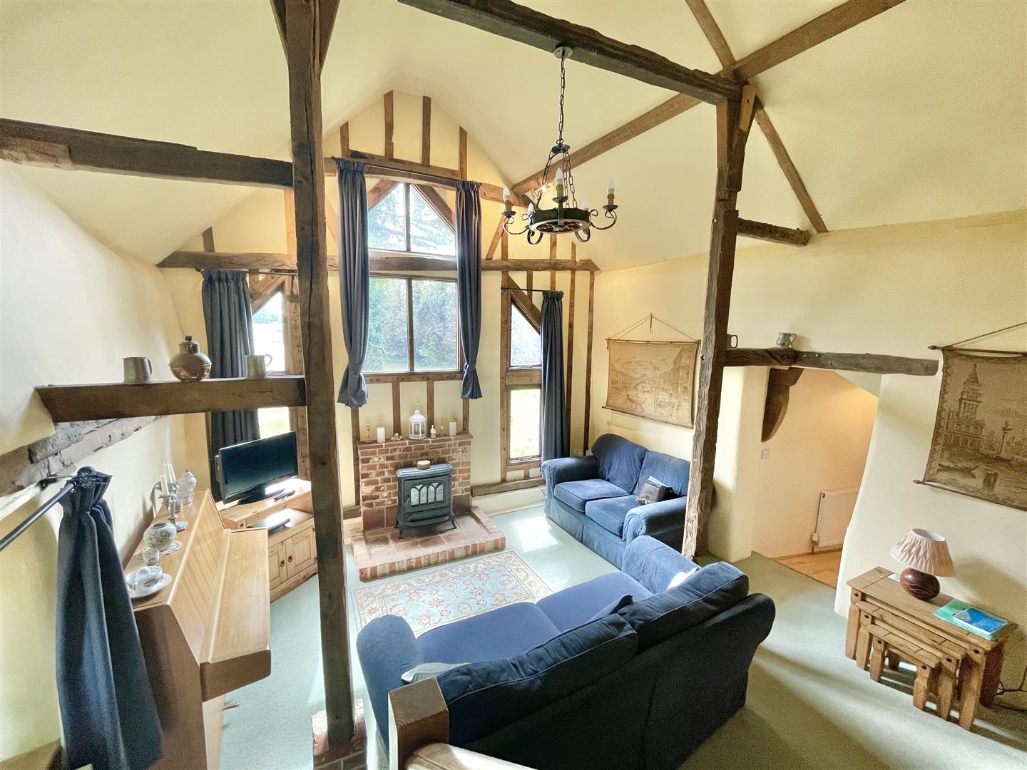 Gates open to a secondary driveway offering plenty of space for vehicles to park. A secure double garage joins to a useful home office, providing a great place to work. Three further clay lump stores are handy for additional storage needs. The annex sits independently from the main house and has successfully been used as a holiday let for several years, however, could equally provide a perfect solution for older or younger family members, independent or multi-generational living. The main annex living room is light and holds a ‘wow’ factor due to its vaulted height and open staircase leading to the twin bedroom. A functional well fitted kitchen/diner holds charming features of its own. A ground floor main bedroom and bathroom complete the accommodation.