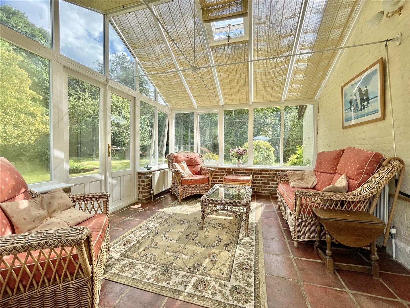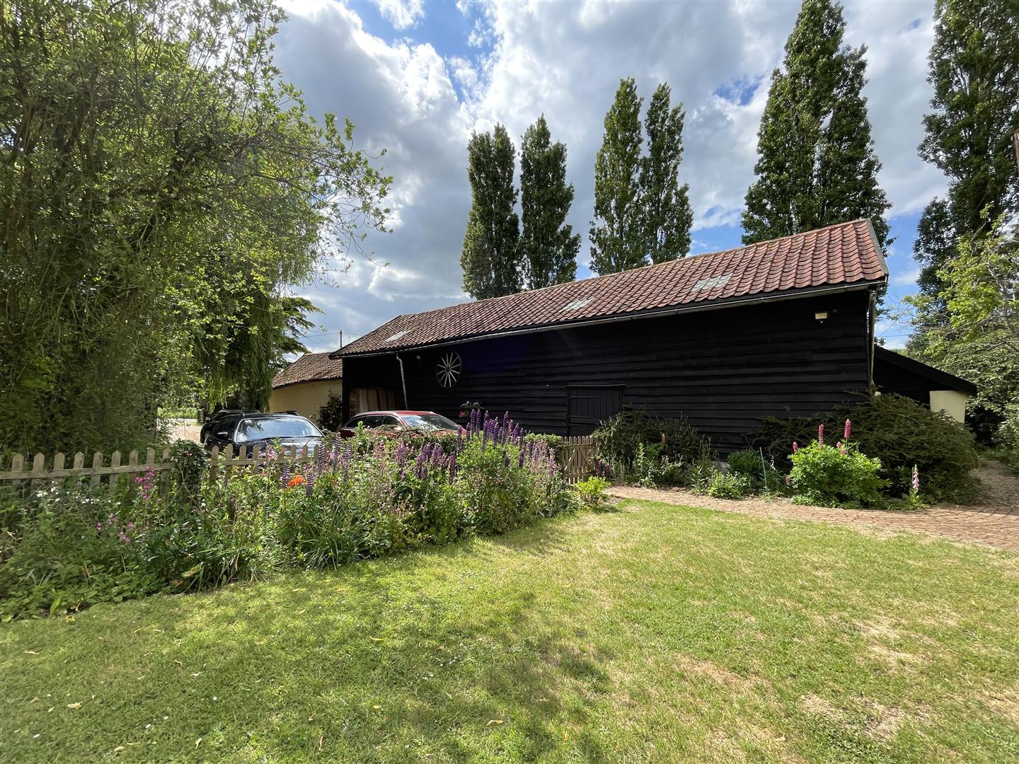 A main driveway leads off the highway, passing an established willow and opening to the parking area, adjacent to two similar sized brick Nissan huts/garaging. Picket fencing opens onto the private, mature lawns which sweep around the main house to where a patio area can be found. Beyond the formal gardens are a gate and a large open ended storage outbuilding, both giving access onto a section of wild garden which edges the plantation. The established plantation covers over 4 acres of the entire grounds and comprises an area of uniformly planted pine trees, tall Leylandii and more - which is an absolute haven for wildlife. A natural pathway works its way around the edge and provides a unique and tranquil place to walk and enjoy nature on your very doorstep!