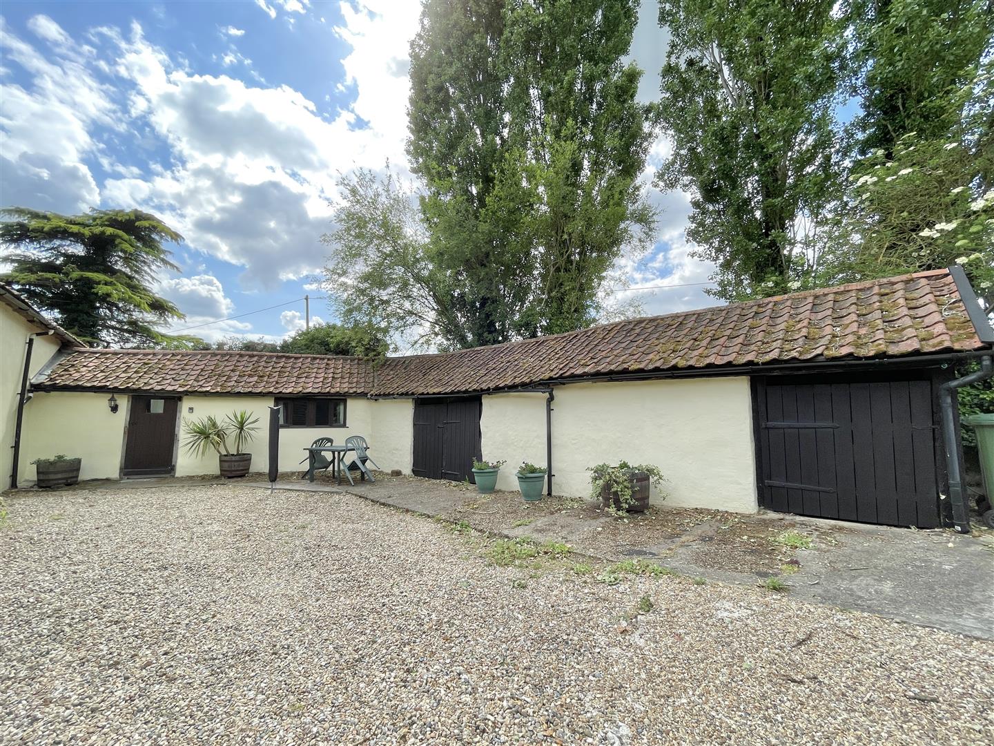 A large, 30’ timber clad barn is an ideal storage facility and sides onto the adjoining open ended, cart-lodge with storage attic above.