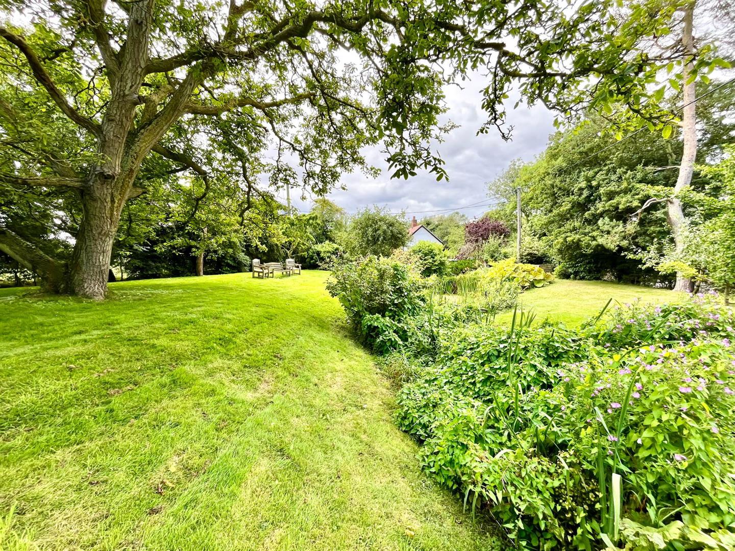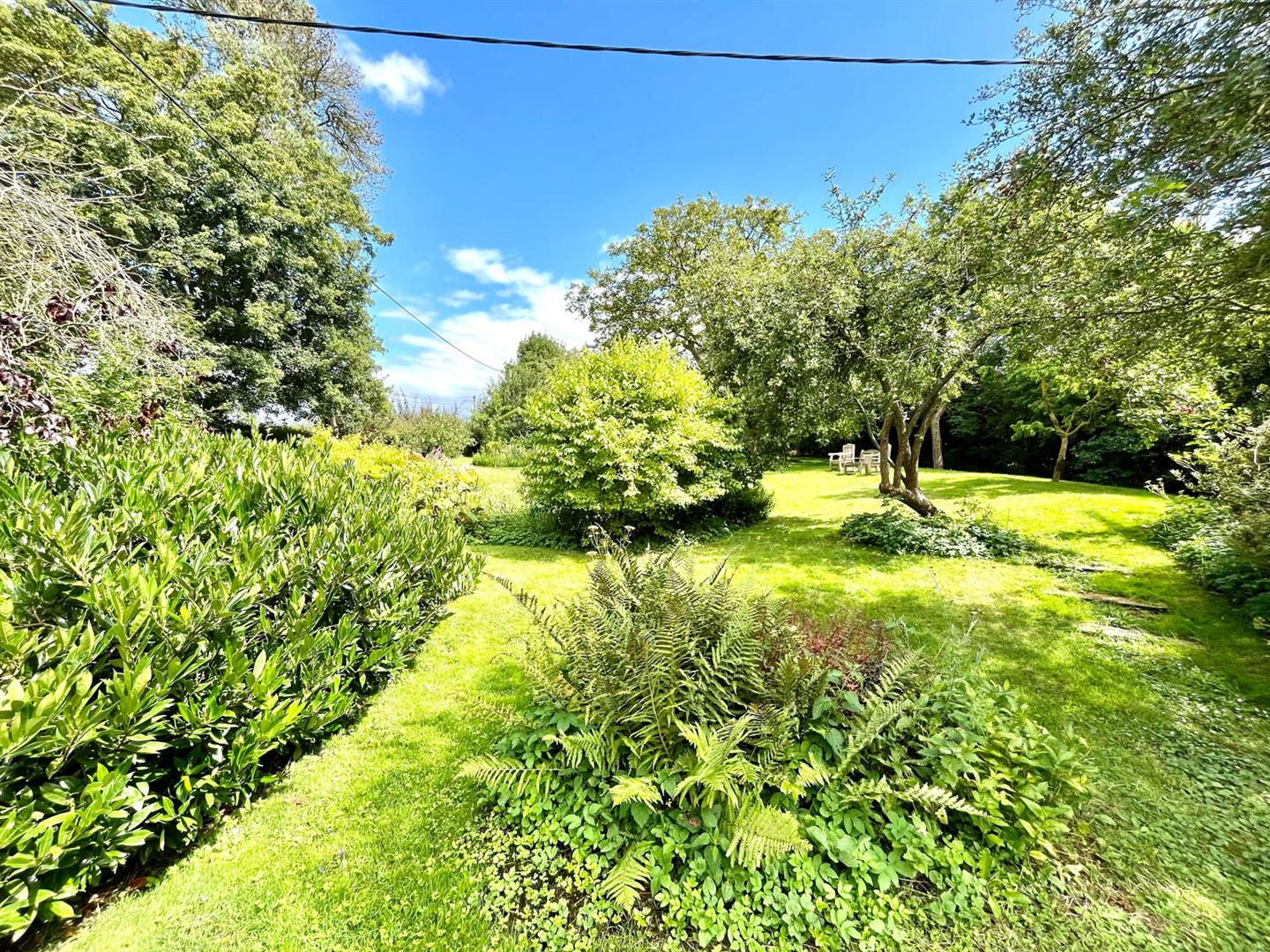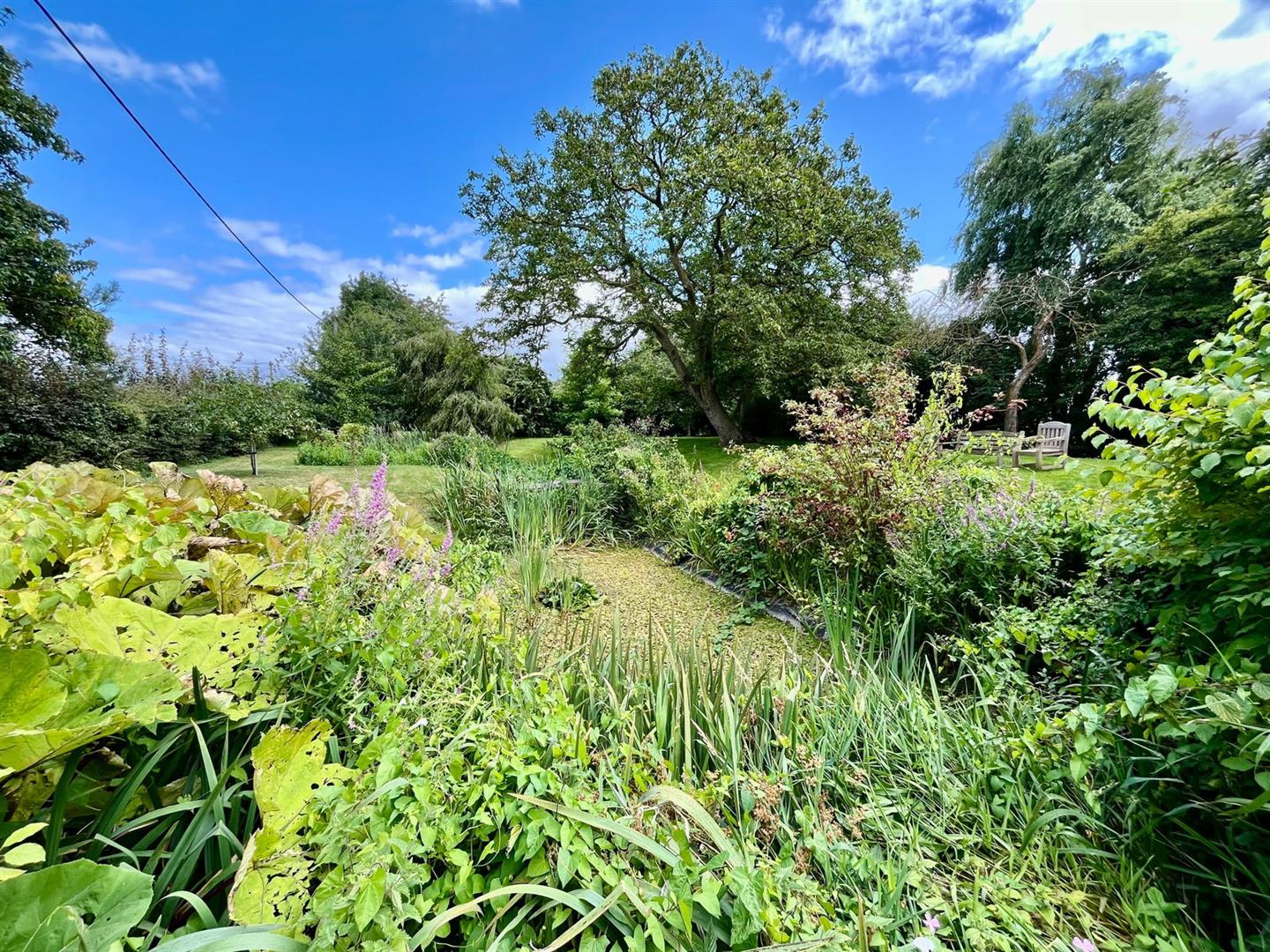 This property offers a picturesque and spacious outdoor environment, ideal for those who appreciate nature and gardening. The off-road parking is situated on a shingle area adjacent to a beautiful mature garden, complete with a pond and numerous trees, adding to the tranquility and charm of the space. At the front of the property, you'll find a covered well and a well pump, adding a touch of rustic character. To the right-hand side of the property, a further landscaped garden area features a second pond, a shaped lawn, a summerhouse, and a shed. At the rear of the house, several mature trees provide shade and a natural backdrop to the property. This area also includes a patio, perfect for outdoor dining or relaxation, and another small pond, further enhancing the serene atmosphere. Overall, the property occupies a generous plot of approximately 0.2 acres, offering plenty of outdoor space for leisure, gardening, or simply enjoying the peaceful surroundings.