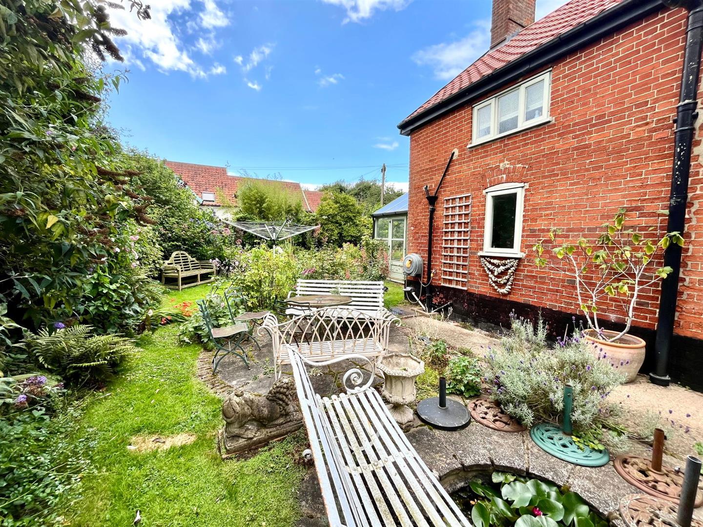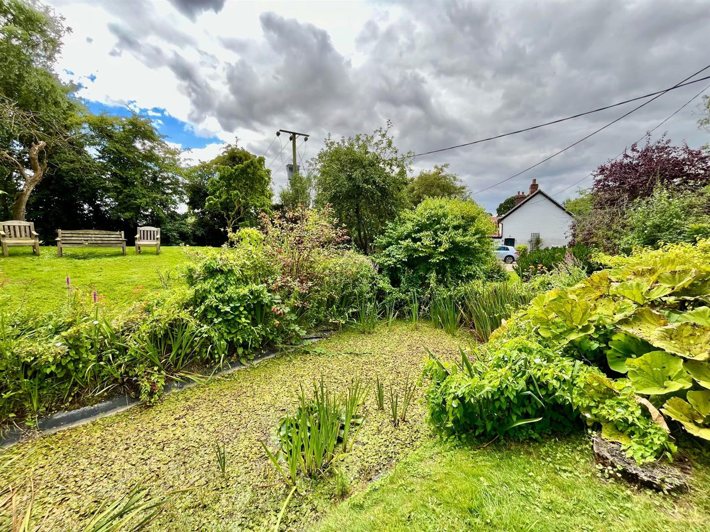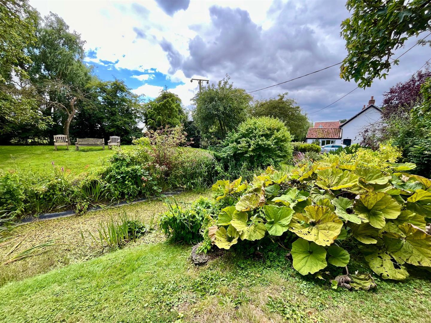 This property offers a picturesque and spacious outdoor environment, ideal for those who appreciate nature and gardening. The off-road parking is situated on a shingle area adjacent to a beautiful mature garden, complete with a pond and numerous trees, adding to the tranquility and charm of the space. At the front of the property, you'll find a covered well and a well pump, adding a touch of rustic character. To the right-hand side of the property, a further landscaped garden area features a second pond, a shaped lawn, a summerhouse, and a shed. At the rear of the house, several mature trees provide shade and a natural backdrop to the property. This area also includes a patio, perfect for outdoor dining or relaxation, and another small pond, further enhancing the serene atmosphere. Overall, the property occupies a generous plot of approximately 0.2 acres, offering plenty of outdoor space for leisure, gardening, or simply enjoying the peaceful surroundings.