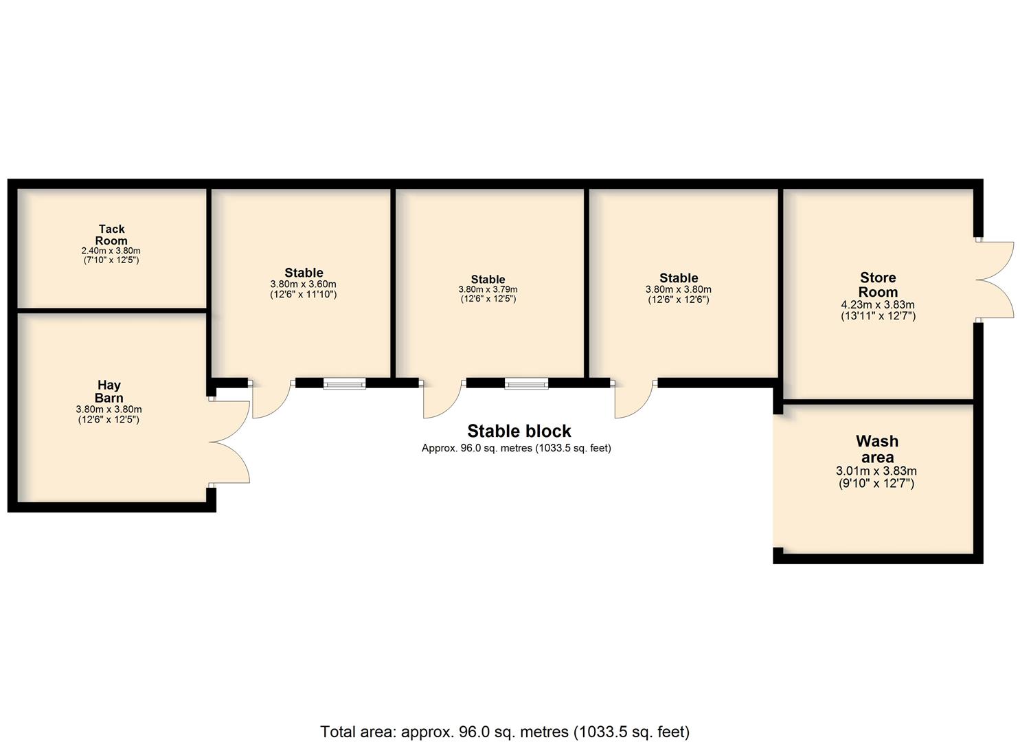 Along from the main driveway, road access from Pristow Green Lane opens to a second driveway and stable block - which includes three stables, a hay barn, wash bay and tack room. Each side of the stable block are two small paddocks, with a further two gated paddocks having access into a post and rail enclosed ménage.