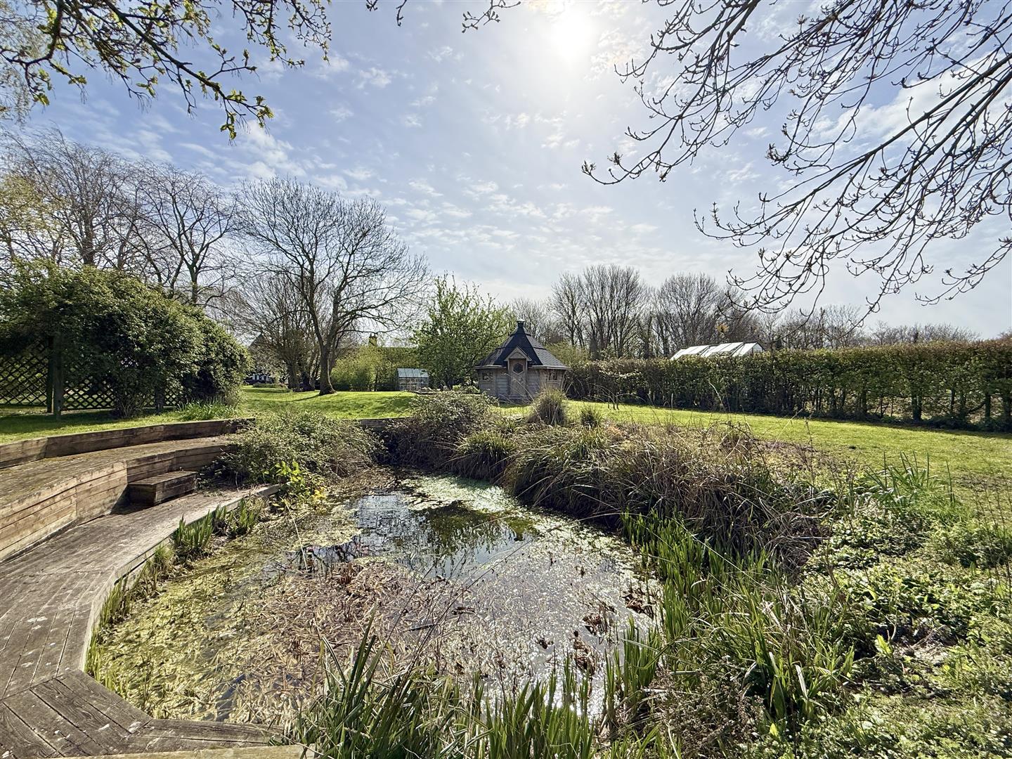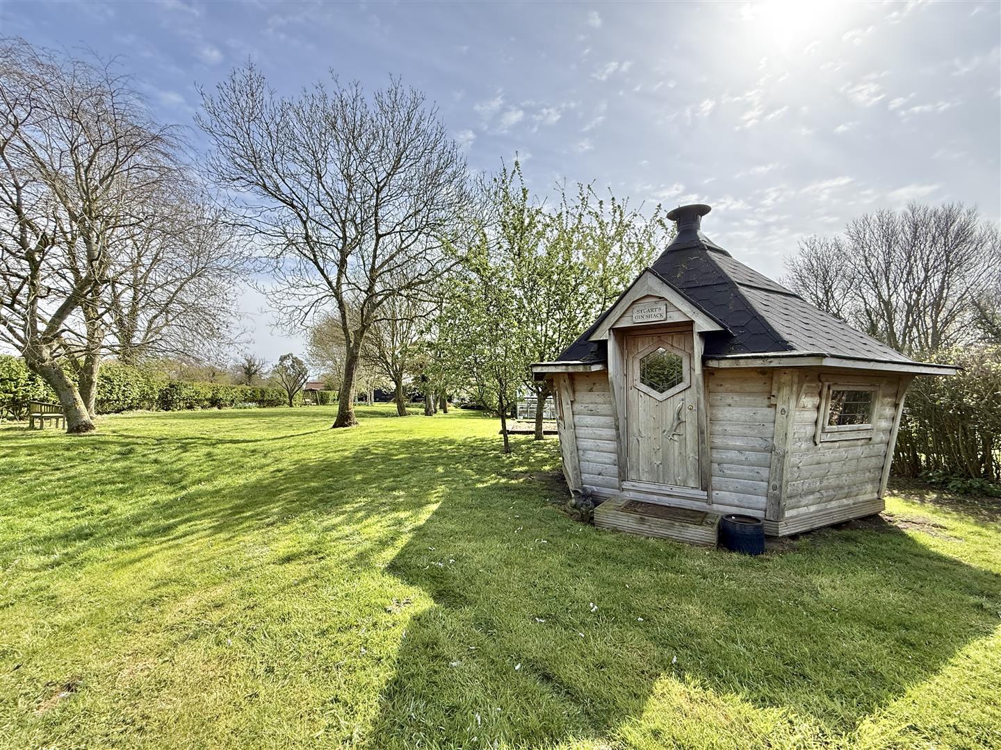 Beautiful gardens lead away from the barn with lawn and various trees inset along with hedge, which runs along the border. To the far corner is a timbered hobbit hut and nature pond which has a tiered decking area creating a lovely spot to relax and enjoy the garden. A secure wooden gate opens to a secondary part of the garden, which has a chicken run, greenhouse and raised vegetable/herb beds. The entire curtilage of the property (including the equestrian facilities and paddocks) extends to 2.07 ac.