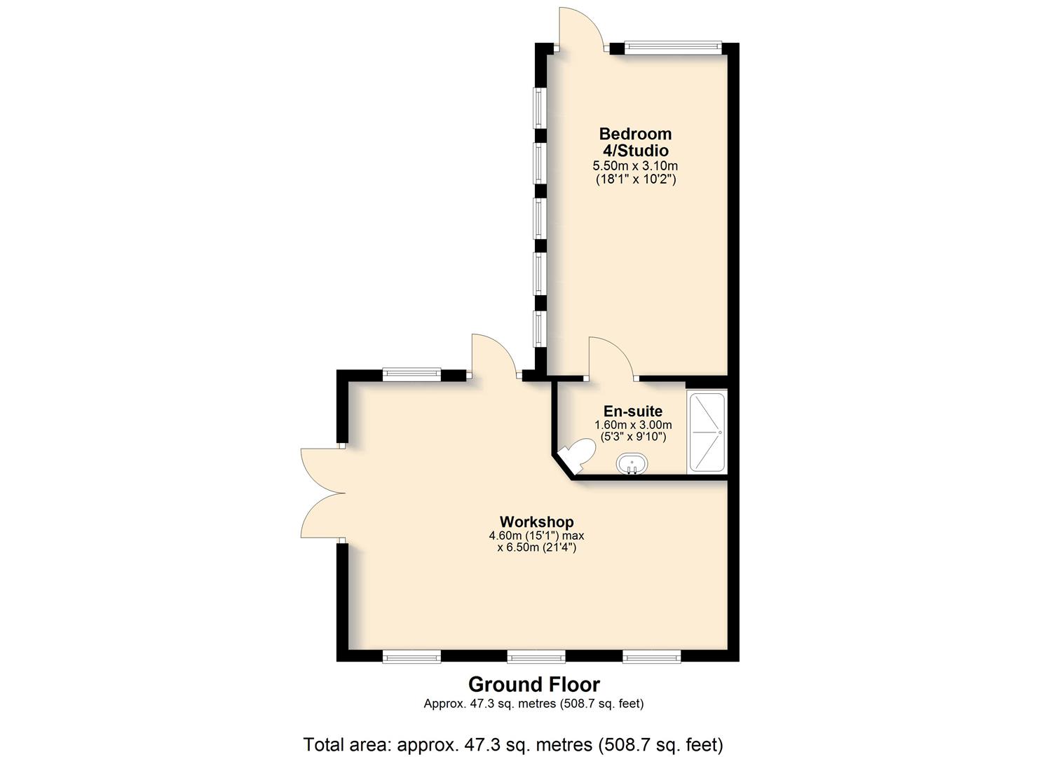The grounds extend to approximately 0.34 acres and have been carefully maintained to create a private and attractive setting. A standout feature is the detached one-bedroom studio, positioned to the front of the main house. With its vaulted ceiling, generous glazing and contemporary en-suite, it provides excellent flexibility, ideal for guest accommodation, independent living, or a home office.